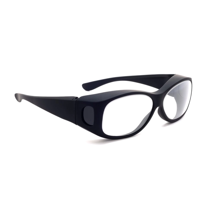 0.75Pb/0.5Pb 의 와이드 렌즈와 부드러운 유선형의 블랙 프레임 디자인의 방사선 방호용 납고글 입니다.